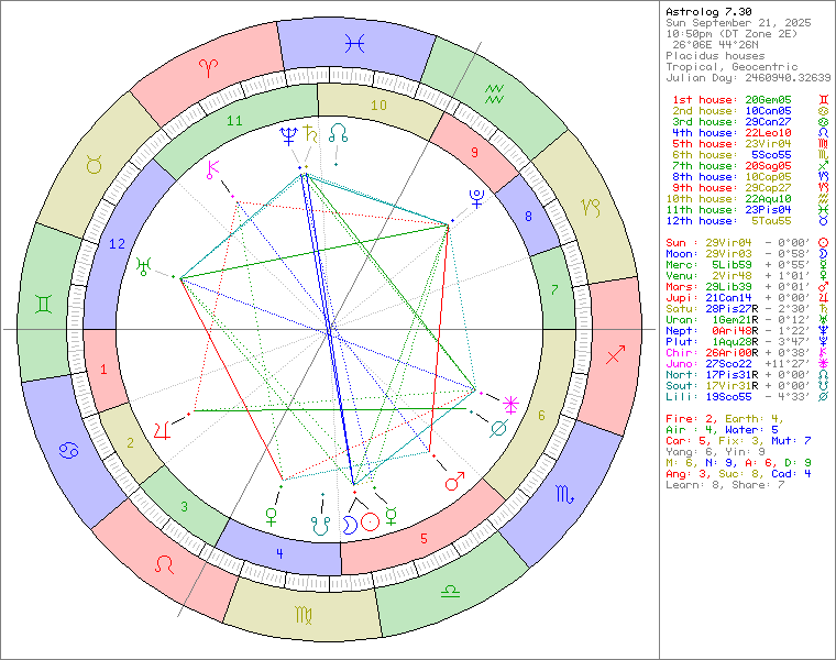 ASTROGRAMA MOMENTULUI DE LUNA NOUA CU ECLIPSĂ DE PE 21.09.2025 ORA 22:50 PM