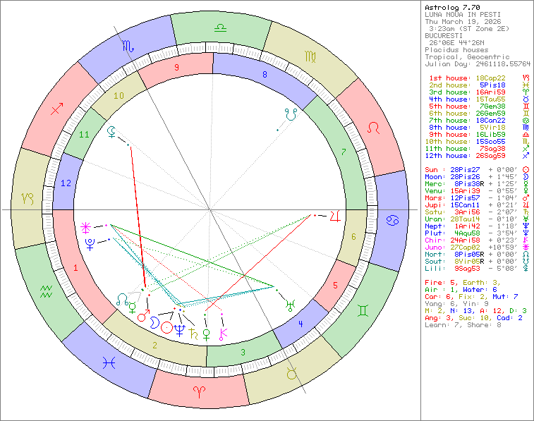 ASTROGRAMA MOMENTULUI DE LUNA NOUA DE PE 19.03.2026 ORA 3:23 AM